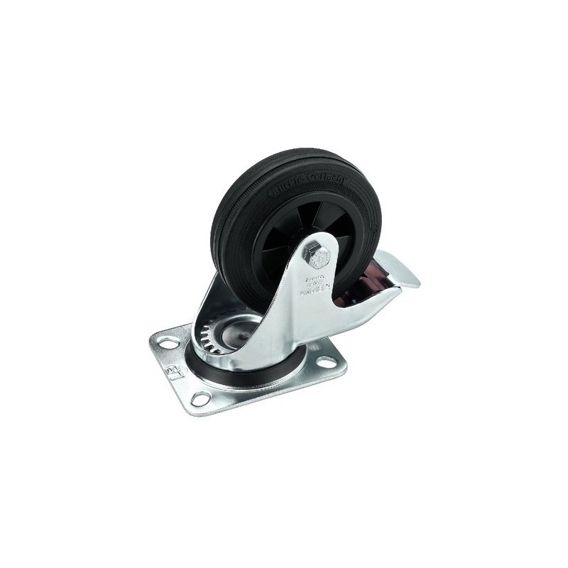 Roata Blickle GCB-100; - Roata pivotanta (rulment) din cauciuc cu blocaj -Parti metalice zincat -Diametru roata: 100mm -Inaltime: 125mm -Suprafata suport: 100x85mm -Sporta 70Kg
