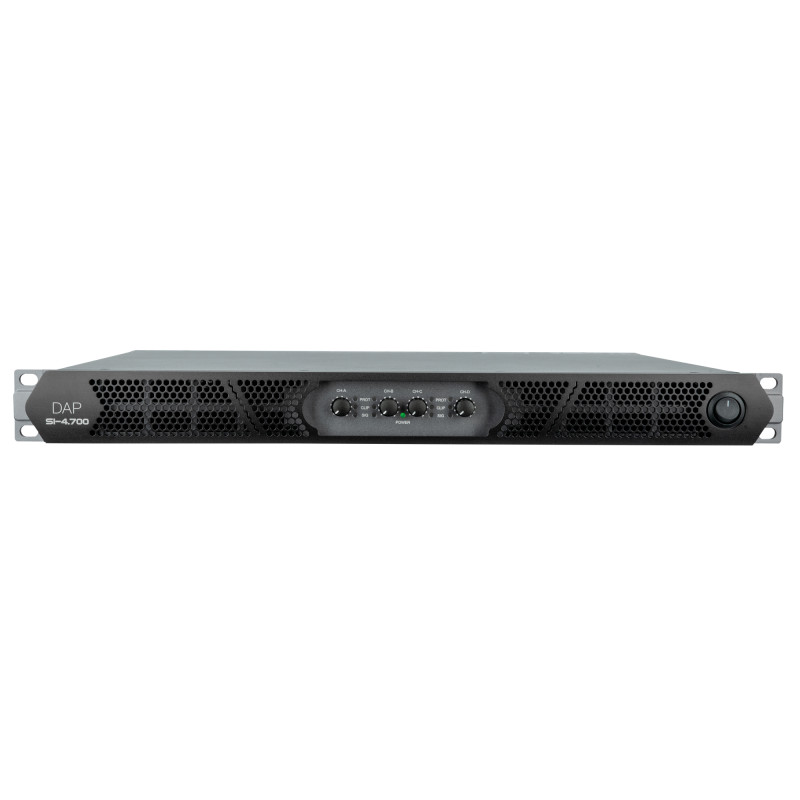 DAP SI-4.700 este un amplificator de putere compact și ușor cu 4 canale pentru instalații fixe. Într-un spațiu de rack de 1U, furnizează 4x 700 W în 4 ohmi, este capabil să conducă sarcini de 2 ohmi și poate fi conectat pentru și mai multă putere. Este proiectat pentru impedanță scăzută și curent ridicat, cu stabilitate excelentă.