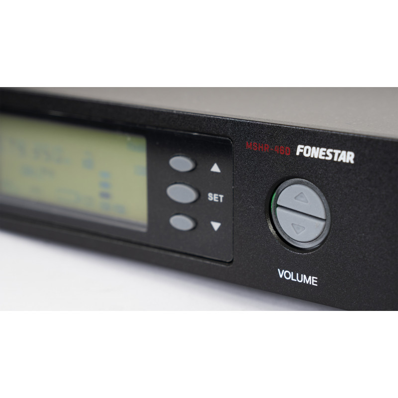 Are 32 de canale selectabile de la 631 la 645 MHz, cu funcție de scanare automată și transmisie a canalului la microfon prin IR.