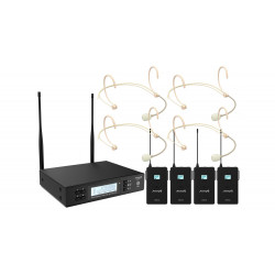 Fiecare dintre cele patru microfoane bodypack cu un microfon cu cască cu putere de ieșire RF de precizie maximă, asigurând o acoperire largă și puternică. Modul de oscilație PLL și stabilitatea frecvenței de transmisie mai mică de 30 ppm asigură o transmisie lină și precisă. Cu o gamă dinamică excepțională de ≥100dB(A) și un răspuns în frecvență de 50Hz-15KHz, aceste microfoane captează fiecare nuanță a vocii tale. Echipate cu microfoane cu condensator, acestea oferă o presiune maximă de intrare de 130 dB SPL pentru o performanță puternică și autentică.