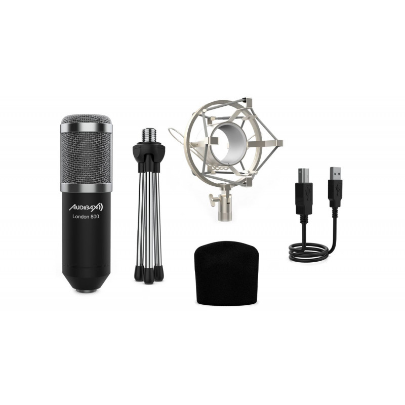 Pachet microfon de studio cu USB Audibax London 800 USB Pack Silver