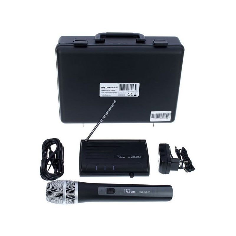 T.bone TWS One A Vocal, UHF Wireless-System, 1 frecvență fixă, ISM Band, non-diversitate, Jack ieșire, transmițător portabil cu capsula dinamica, cardioidă, funcționează cu 2 baterii AA, fără licență necesară toată Europa, frecvența C 864.500 MHz, max. 2 sisteme TWS One cu frecvențe diferite (A, B, C sau D) paralele. Notă: utilizați conectorul de ieșire doar cu cabluri dezechilibrate, incl. Cablu și carcasă Jack-Jack