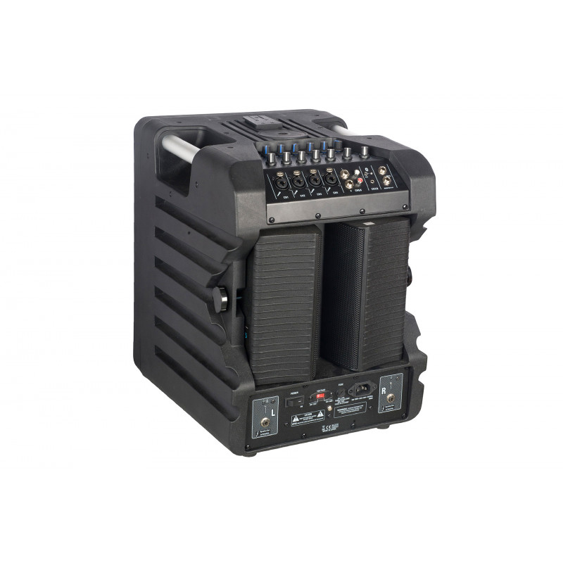 Sistem portabil de coloană PA, ușor și plin de caracteristici. difuzor 2 x 4? HF , 1x 10?SUB, 123 dB SPL , 255W (sub)+60w (sat), amplificator German Engineering Class D, răspuns în frecvență 50-20kHZ, mixer intern pe 6 canale cu Echo & Delay Effects și bluetooth.