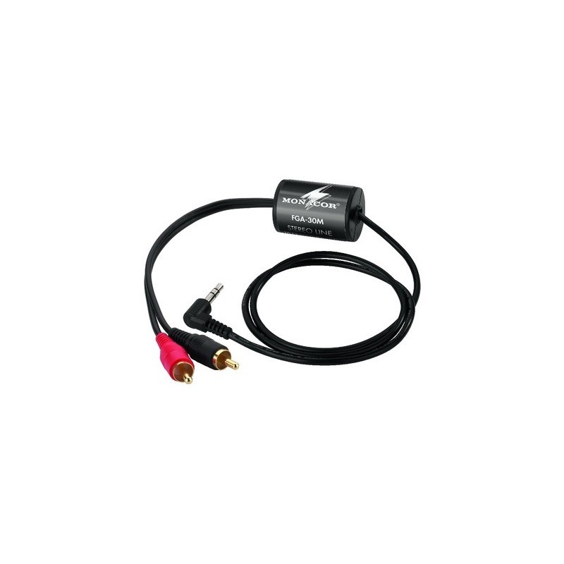 Transformator de linie stereo Stage Line FGA-30M. Transformator de linie stereo, design compact, pentru prevenirea interferențelor de semnal și a buclelor de zgomot care pot apărea, de exemplu atunci când conectați carduri de sunet sau notebook-uri la un amplificator. Intrări și ieșiri izolate galvanic; 2 mufe RCA; Plug stereo de 3,5 mm; Impedanță de intrare / ieșire: 20kΩ; Interval de frecvență: 20-30.000Hz; THD: <0,01%; Raport de transmisie 1: 1. Ø 24mm x 38mm, 32g Lungime inclusiv cablul de conectare: aprox. 115cm