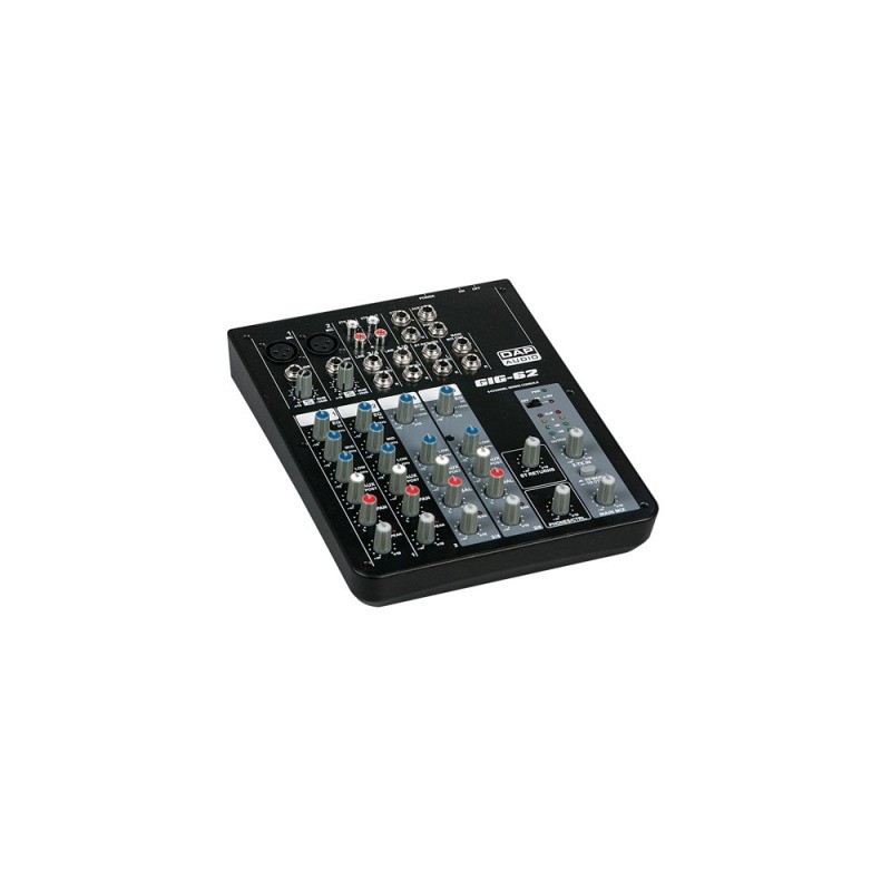 Consola de amestecare GIG-62 este dotată cu funcții care nu pot fi găsite în alte console de dimensiunea sa: 2 mono (prevăzute cu amplificatoare pre-microfon cu zgomot ultra-zgomot și Phantom Power la +48 Volt) și 2 canale stereo de intrare. Fiecare dintre ele este prevăzut cu un egalizator cu 3 benzi pentru controale HI, MID și LOW, precum și 1 control auxiliar, contoare de grafic de bare cu 4 segmente extrem de precise și intrări pe 2 căi atribuibile mixului principal, camerei de control / telefoanelor sau grupului ieșiri.