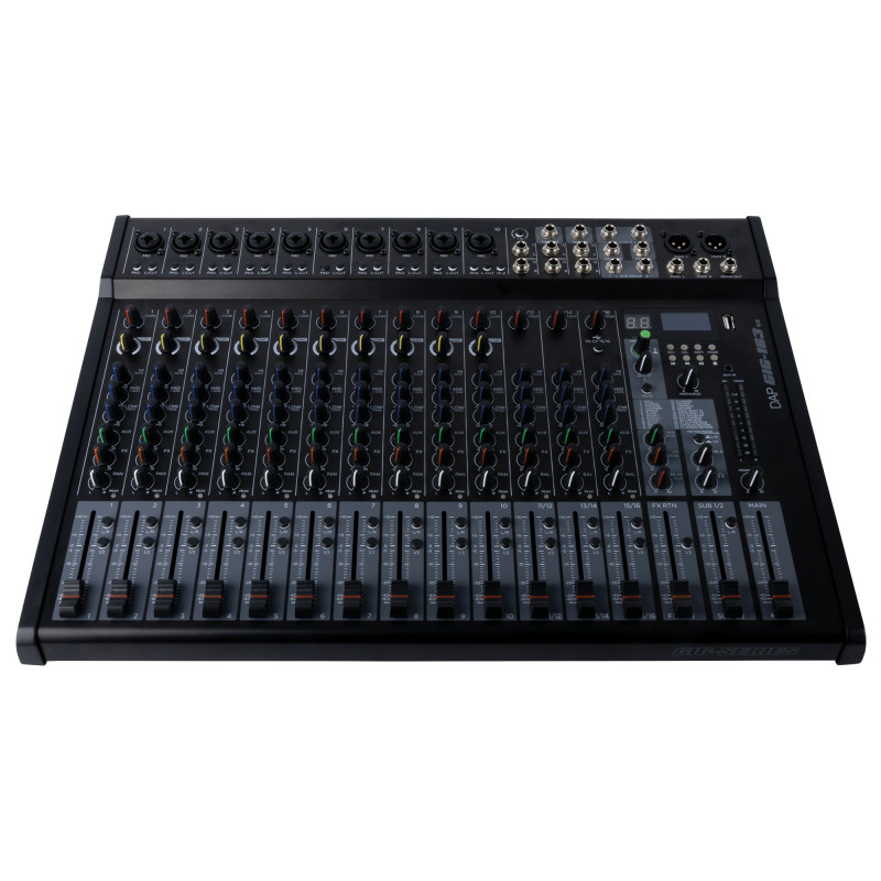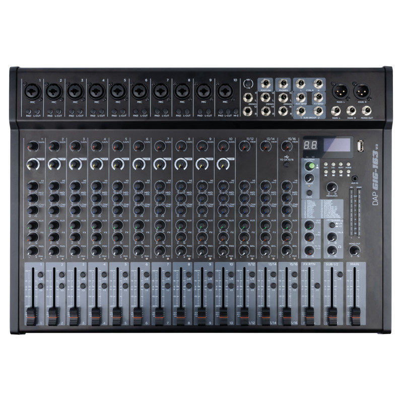 DAP GIG-163 V2 este un mixer compact, dar capabil, cu 16 canale, conceput pentru spectacole live, sesiuni de studio și configurații hibride. Oferă o gamă largă de intrări, opțiuni de rutare, funcții profesionale și efecte integrate, fiind ideal pentru muzicieni, ingineri de sunet și creatori de conținut care solicită flexibilitate fără a compromite calitatea sunetului.