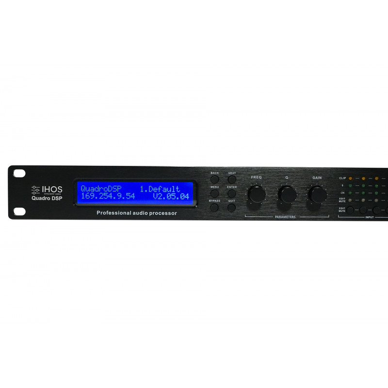 Procesor profesional de difuzoare, cu funcții DSP variabile și compresoare integrate, limitatoare, divizoare de frecvență, EQ dinamic, întârzieri, egalizatoare, intrare și ieșire cu corecție de fază FIR și mixere audio.