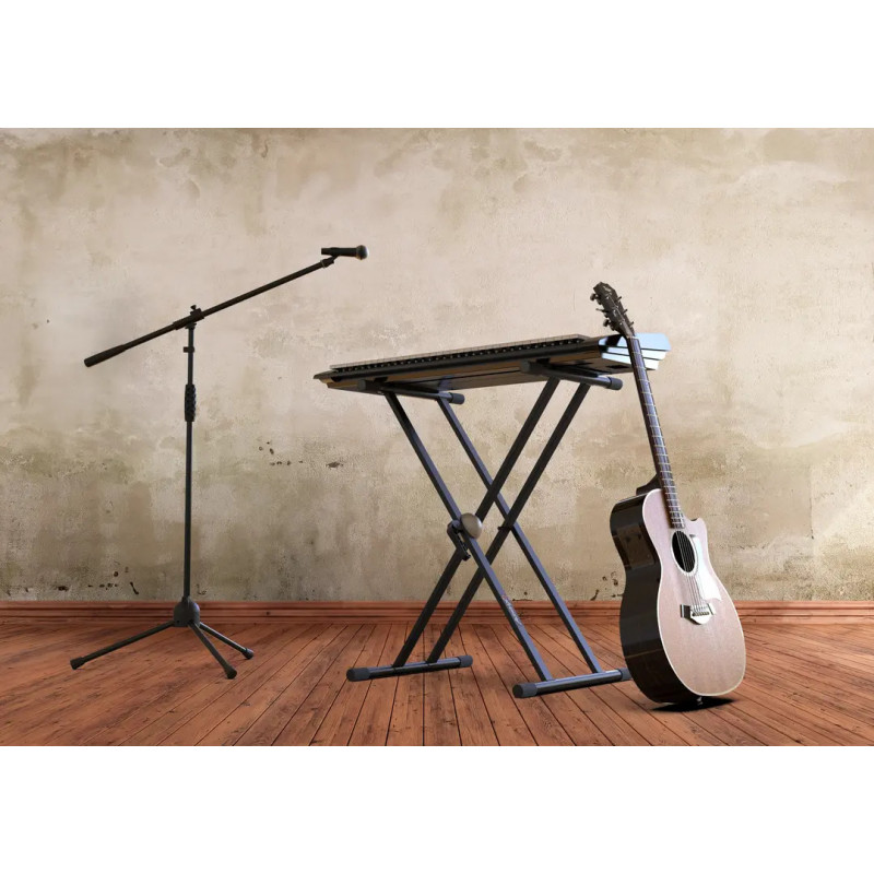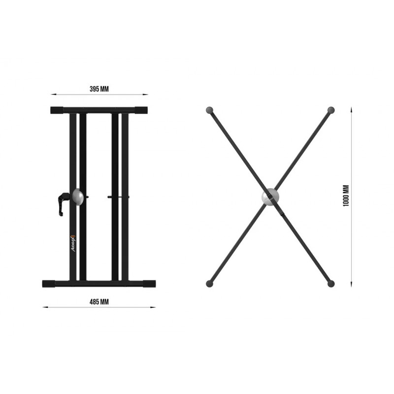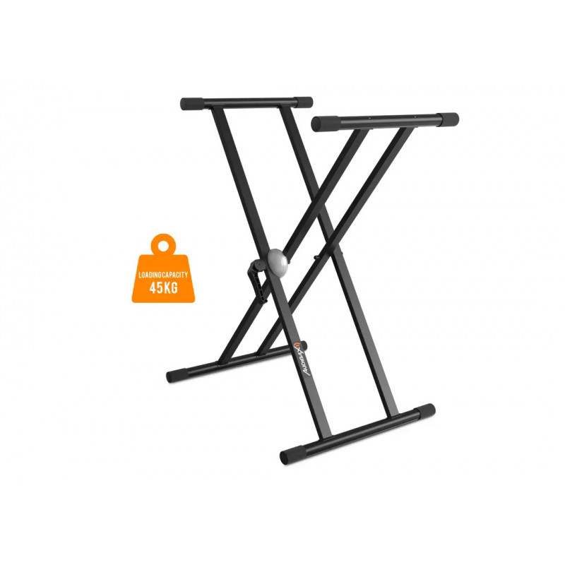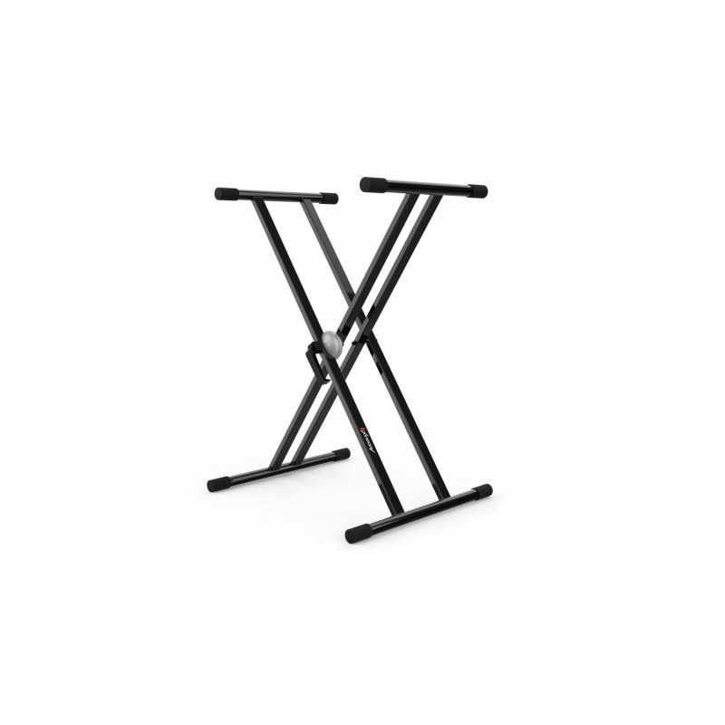 Suport de claviatură profesional foarte robust (foarfecă dublă) cu sistem profesional de reglare a înălțimii SNAP LOCK și design cu structură dublă.