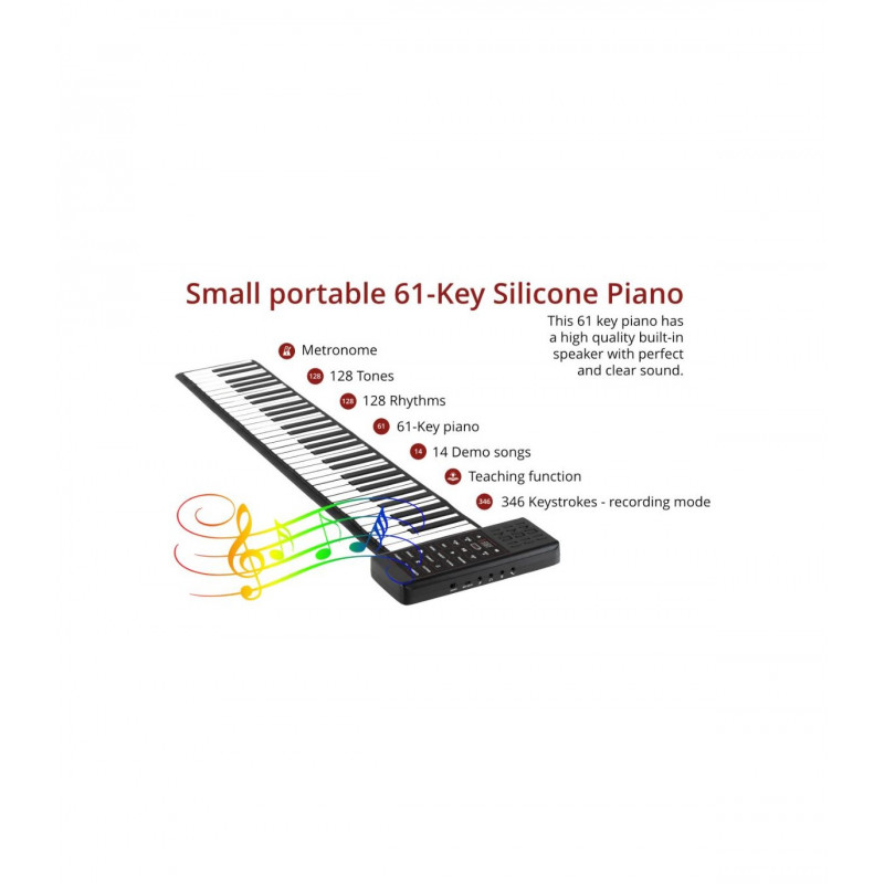 Pian roll-up McGrey RA-61 cu 61 clape 128 sunete, 128 ritmuri si 45 melodii demo, interfata MIDI/USB, functie de inregistrare, include pedala de sustain, sursa de alimentare si instructiuni de operare