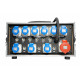 Rack distribuitor de energie CEE, dimensiune: 6U, 1 x 5PIN 32A intrare CEE, 11 x ieșire Powercon, 11 x ieșire CEE 16A, voltmetre trifazate.