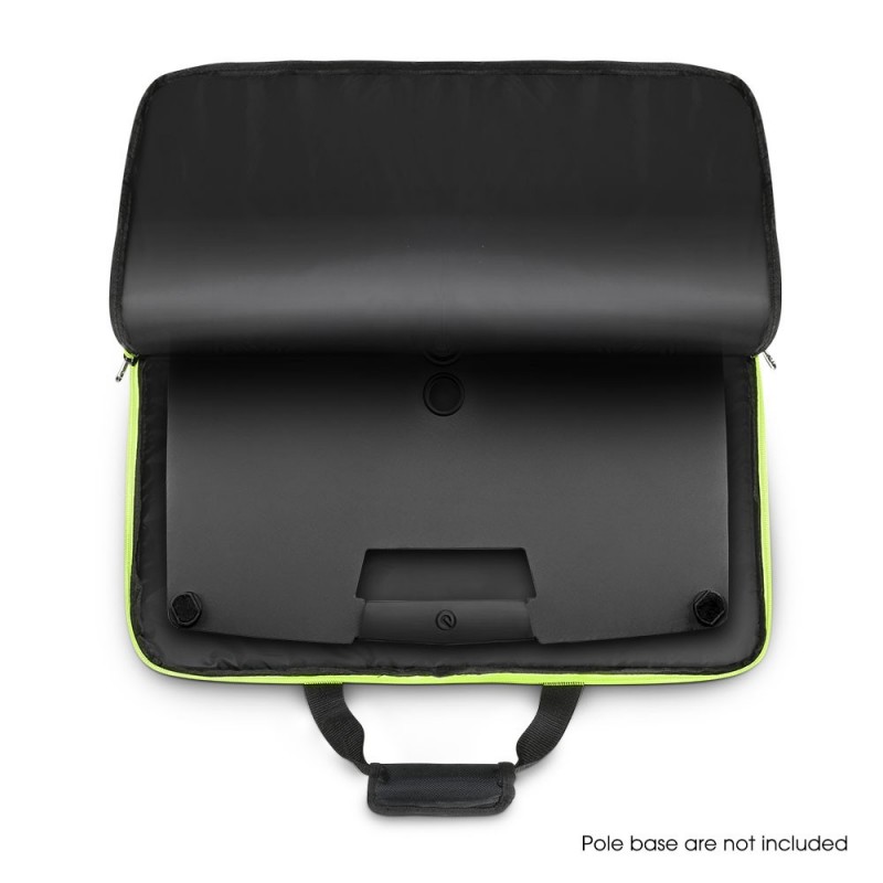 Geantă robustă, captusită, din nylon balistic 1680D hidrofugă, este special concepută pentru plăcile de bază pătrate (563 x 563 mm) ale standurilor de iluminat Gravity GLS331B și GLS431B. Are două curele de transport cu un mâner moale Velcro, o fermoare dublă robustă și o fereastră cu vedere pentru etichete.