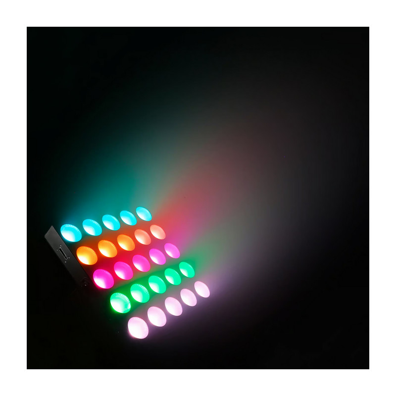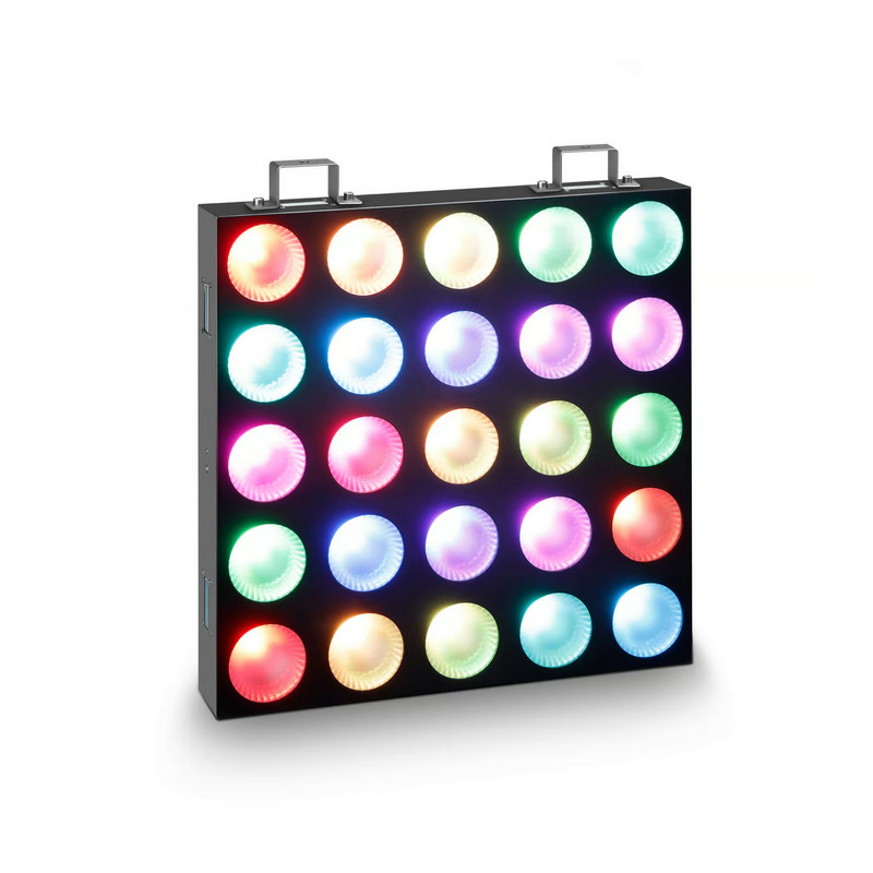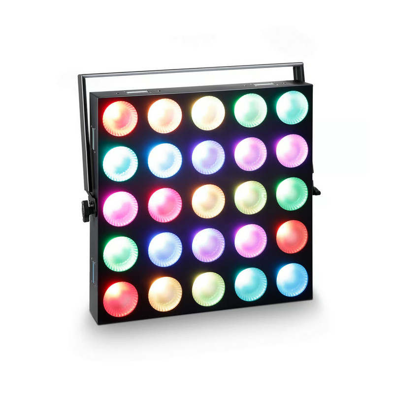 Cu o matrice de 5 x 5 LED-uri RGB de 10 wați, o răspândire a fasciculului de 40° și performanță fără pâlpâire, panoul Cameo Matrix creează efecte interesante de blinder, chase și strobe. Având un control puternic pe un singur pixel, este alegerea perfectă pentru maparea caracterelor alfabetice, a cifrelor și a mesajelor complete. Încuietorile încastrate pe toate laturile permit îmbinarea mai multor panouri pentru fundaluri mari și impresionante.