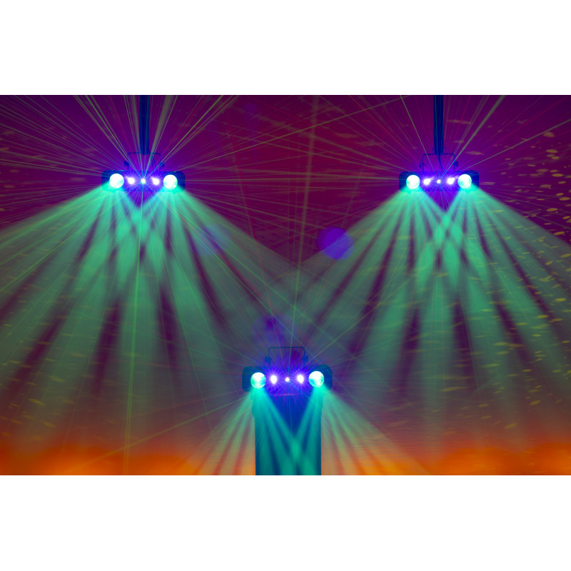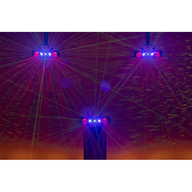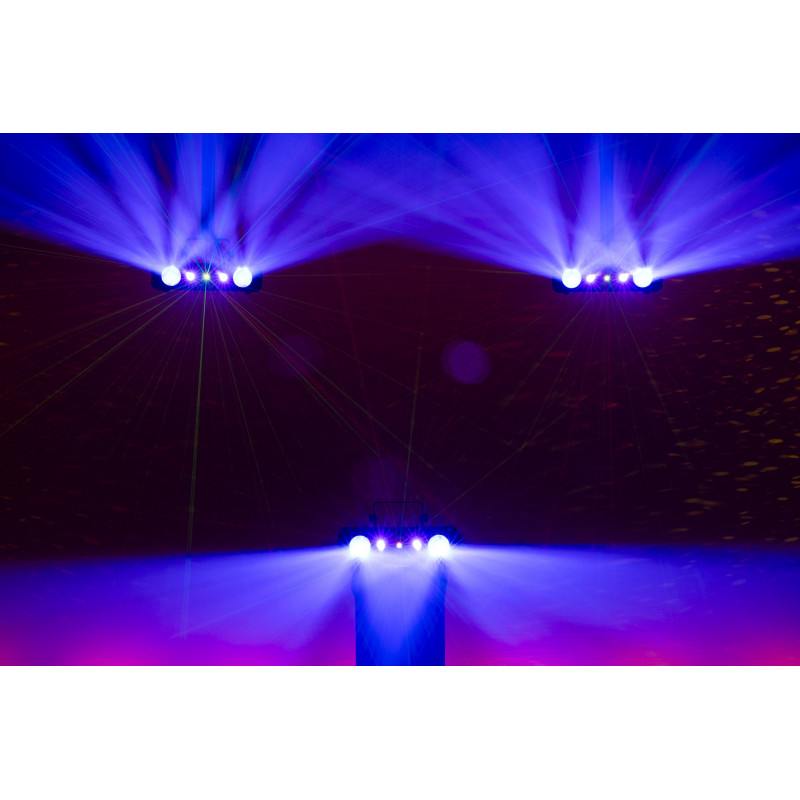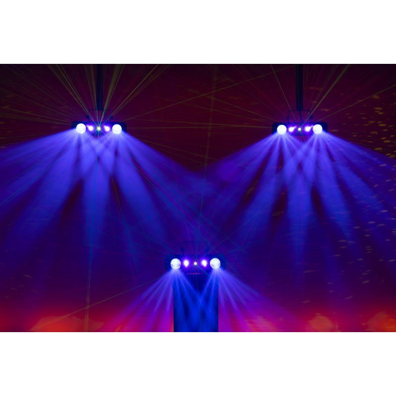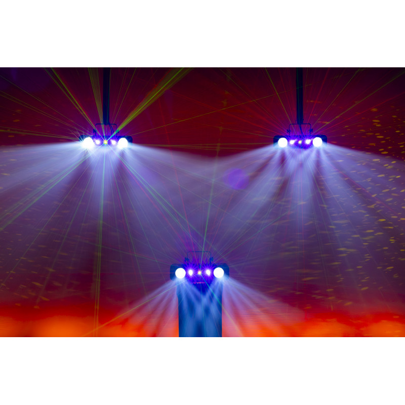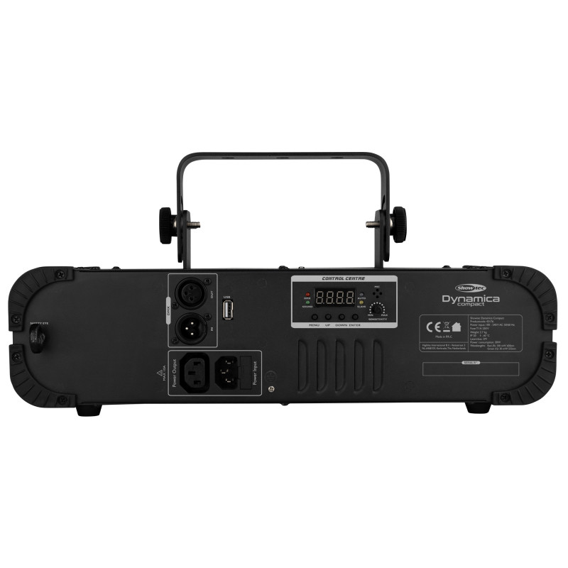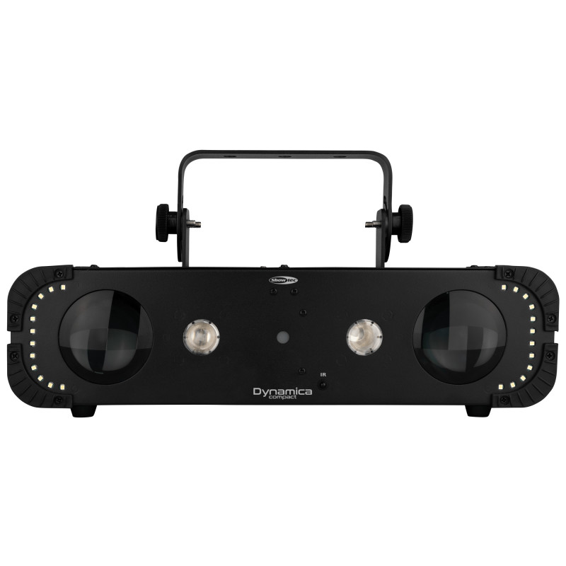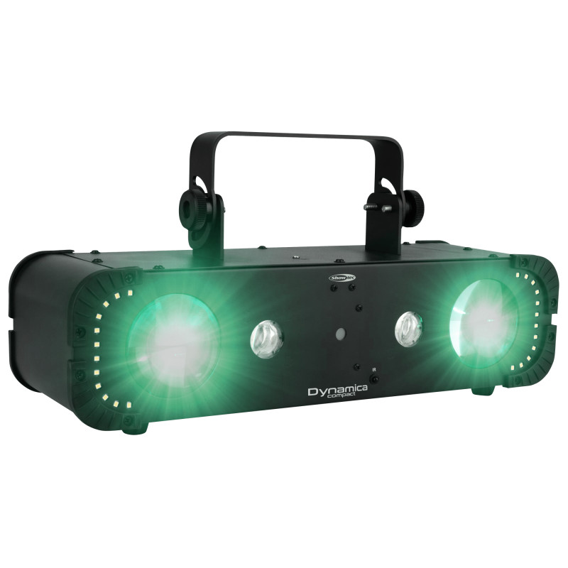 Showtec Dynamica Compact este un efect de lumină 4 în 1 cu efecte de fascicul, stroboscop, spălare UV și laser. Funcția fasciculului este asigurată de 128 de LED-uri RGBWA, 24 de LED-uri CW se ocupă de efectele stroboscopice, în timp ce spălarea UV este asigurată de 2 LED-uri de mare putere. Laserul Clasa 2M are 2 diode laser care proiectează sute de fascicule laser roșii și verzi. Fiecare efect poate fi controlat individual sau pot fi combinate pentru un spectacol de lumini all-in-one. Cu control prin DMX sau telecomandă IR, un mod independent și 14 programe încorporate, Dynamica Compact este perfect pentru DJ, muzicieni, cluburi, baruri și multe altele. Pentru a acoperi zone mai mari, până la 8 unități pot fi conectate în lanț.