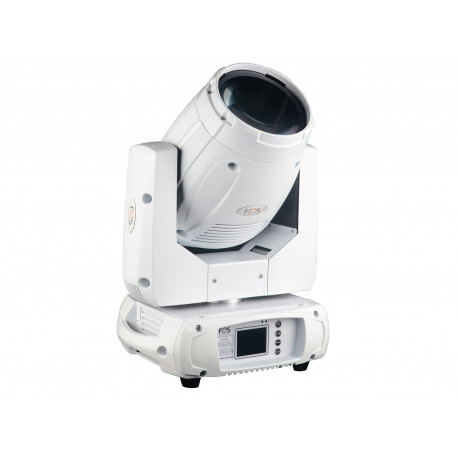 Carcasă albă Professional Beam 200 wați sursă LED 7500K, sistem optic din sticlă cu unghi de proiecție de 2°, roată Gobo cu 14 gobo, roată color cu 12 culori, Pan/Tilt 16 biți, Prismă de rotație cu 8 fațete, focalizare electronică, PowerCon in/out, zgomot redus ventilatoare, 11 kg.