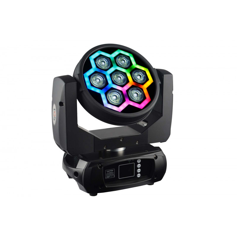 Bazat pe 7 x 12 Watt 4 în 1, LED-uri RGBW pentru lumina principală și 60 x 0,2 Watt LED-uri RGB SMD pentru efectul Aurora.