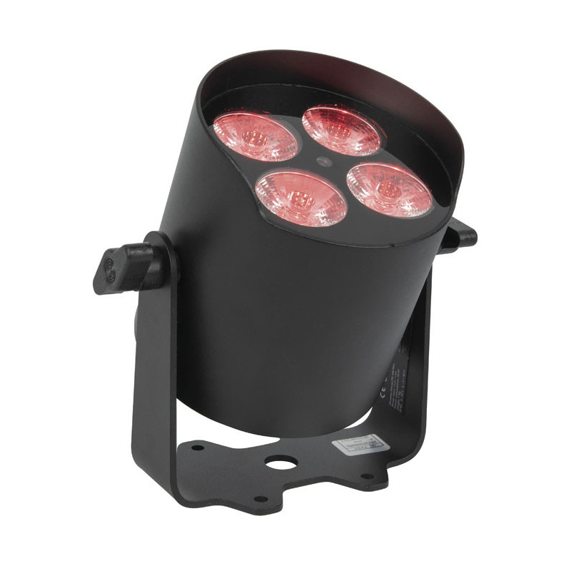 Showtec EventLITE 4/8 Mini este un spot RGBW alimentat de baterii, într-o carcasă robustă din aluminiu, cu clasificare IP65, pentru utilizare mobilă și aplicații în aer liber. Datorită bateriei încorporate, nu aveți nevoie de cabluri. Bateria va dura până la 11 ore pe o singură culoare când este complet încărcată. EventLITE 4/8 Mini este compact, ușor de transportat și ușor. Include mai multe presetări și programe activate prin sunet și poate fi controlat prin afișaj și butoanele din spate sau prin telecomanda IR inclusă.