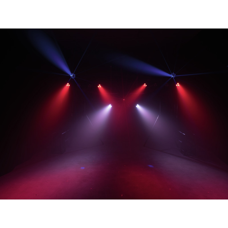 Cele patru pete agățate pe bară sunt echipate fiecare cu LED-uri de 3 x 3 wați de mare putere. Amestecul lor de culori se bazează pe roșu, verde, albastru și alb cald. Bara are și 4 LED-uri UV, care oferă popularul efect de lumină neagră.