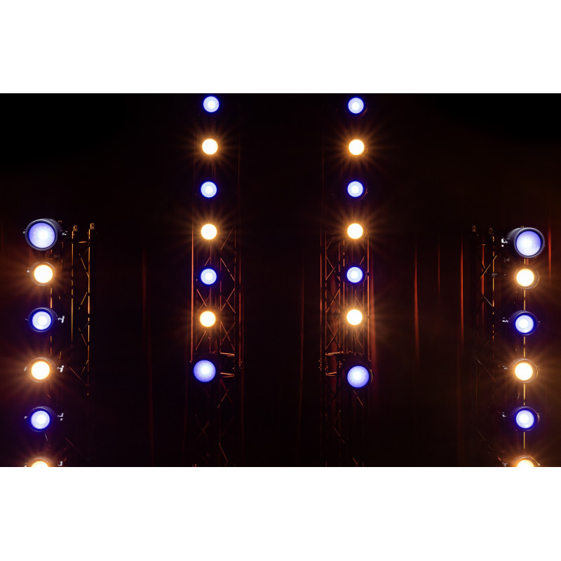 Showtec Stage Blinder 200 Blaze este un blinder LED puternic de 200 de wați care utilizează un LED COB alb cald de 3000 K cu un CRI >92. Are LED-uri chihlimbarii integrate în mod unic pentru a imita un efect de diminuare a intensității luminii din tungsten și LED-uri RGB pentru un efect de flacără. Poate fi controlat prin DMX/RDM, dar are și moduri manual, master/slave și automat. Ecranul OLED oferă feedback util asupra setărilor.